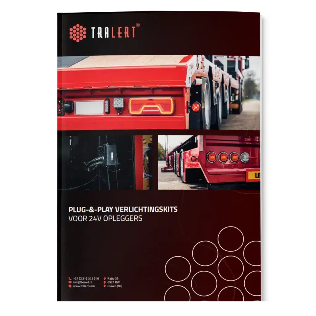 Met TRALERT® plug-and-play verlichtingskits ontvangt u een complete bekabelings- en verlichtingsoplossing, volledig afgestemd op uw 24V oplegger. Samen met u tekenen wij de optimale configuratie uit, zodat de sets perfect aansluiten op uw productieproces. Zo maakt TRALERT® uw werk gemakkelijker.