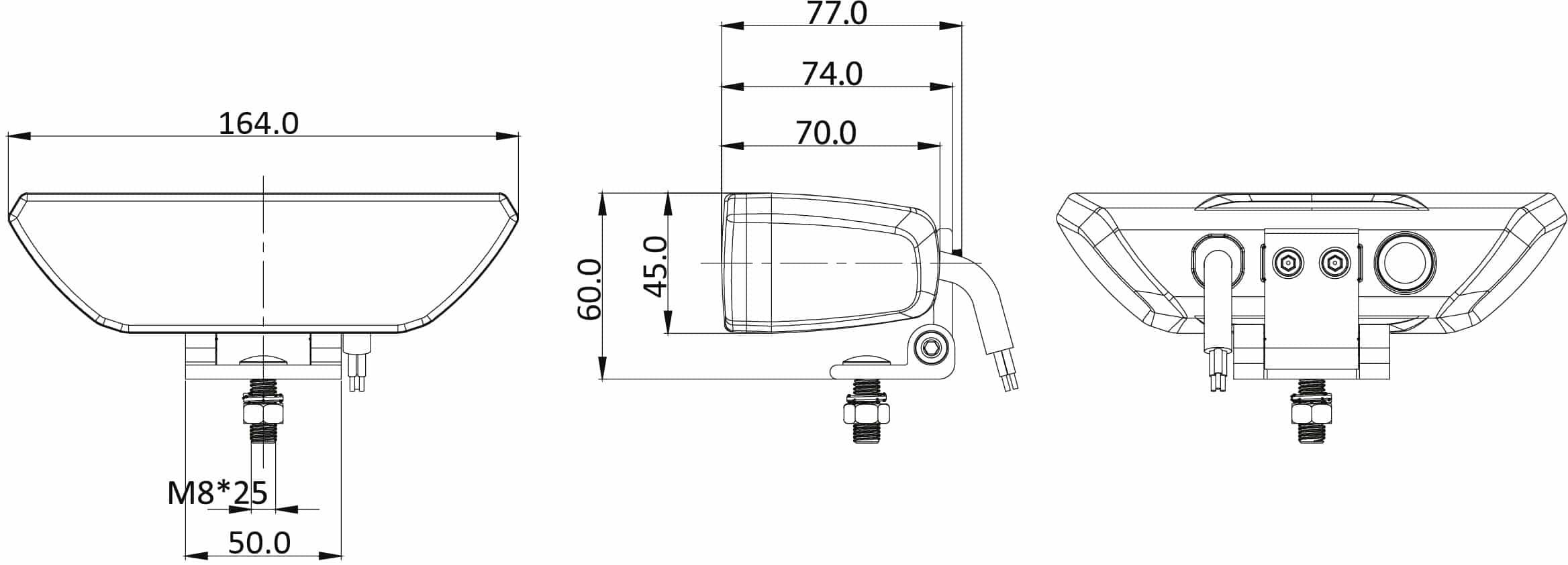 De OZZ WR serie omvat LED werklampen ontworpen voor toepassingen waarbij compact formaat en hoge lichtopbrengst gewenst zijn. Dit model produceert 3.600 lm en heeft een breedstralend lichtbeeld, waarmee het geschikt is voor algemene werkomstandigheden rondom voertuigen en machines. Dankzij de afmetingen van 164x45x70 mm is deze LED werklamp inzetbaar in kleinere montageruimtes.